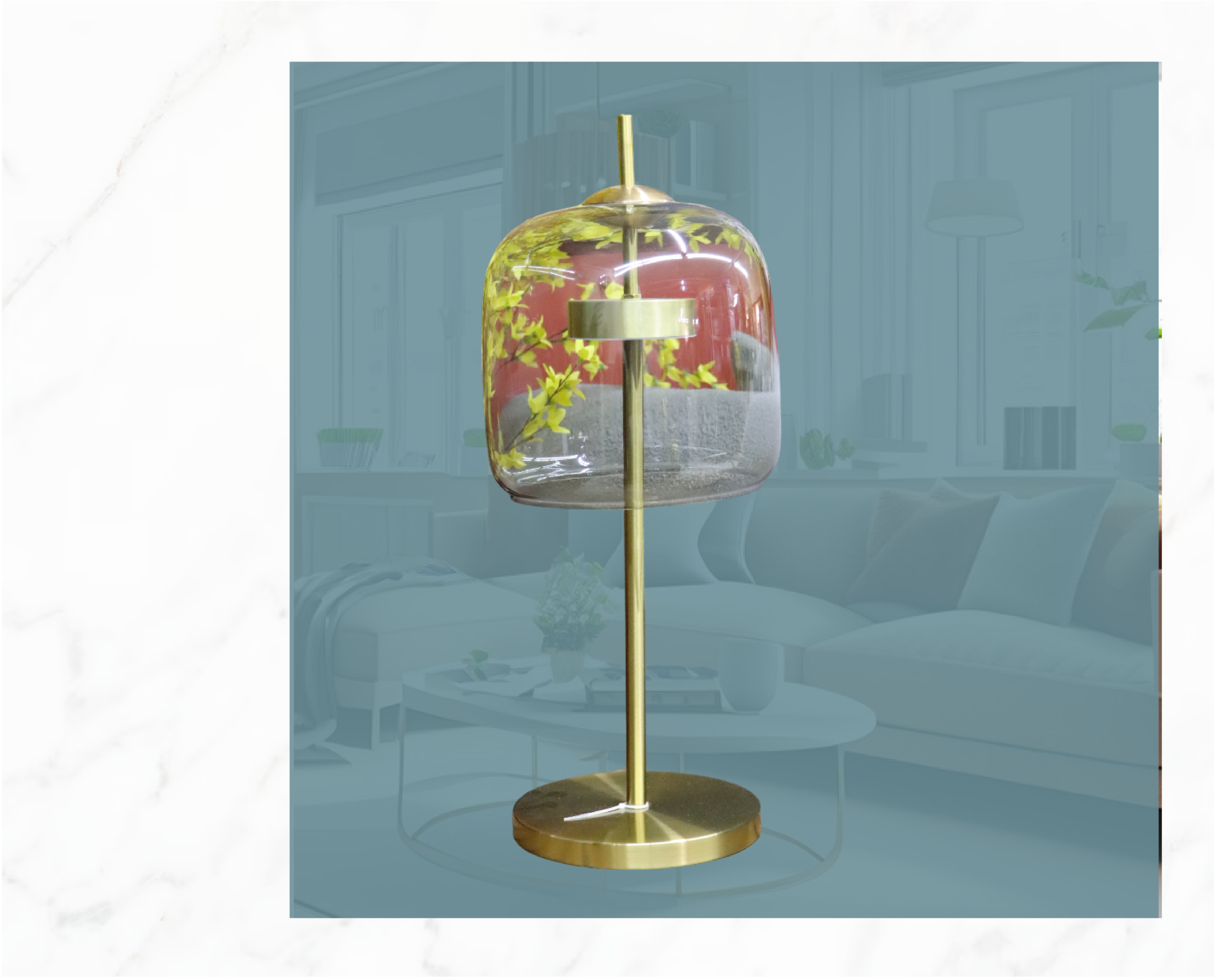 Lampara dorada con cristal e imagen de follaje incrustada