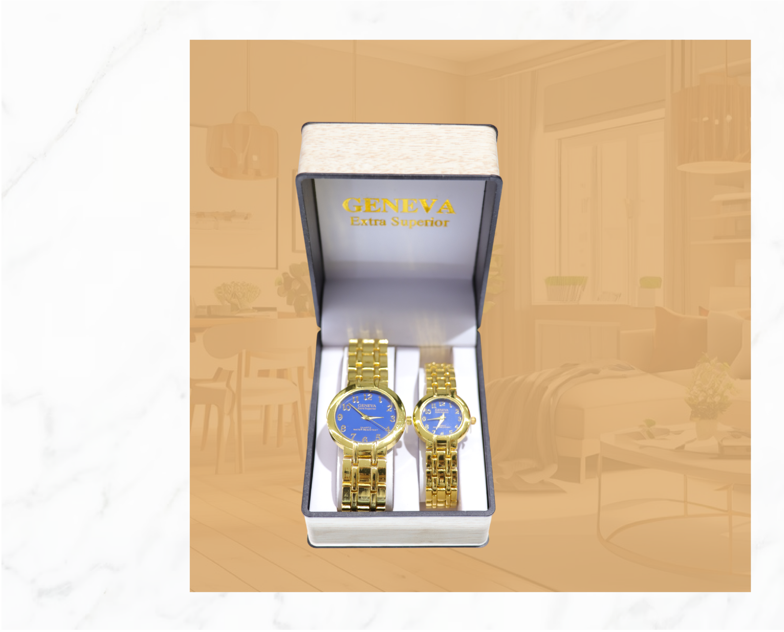 RELOJ GENEVA DORADO-AZUL PAREJA